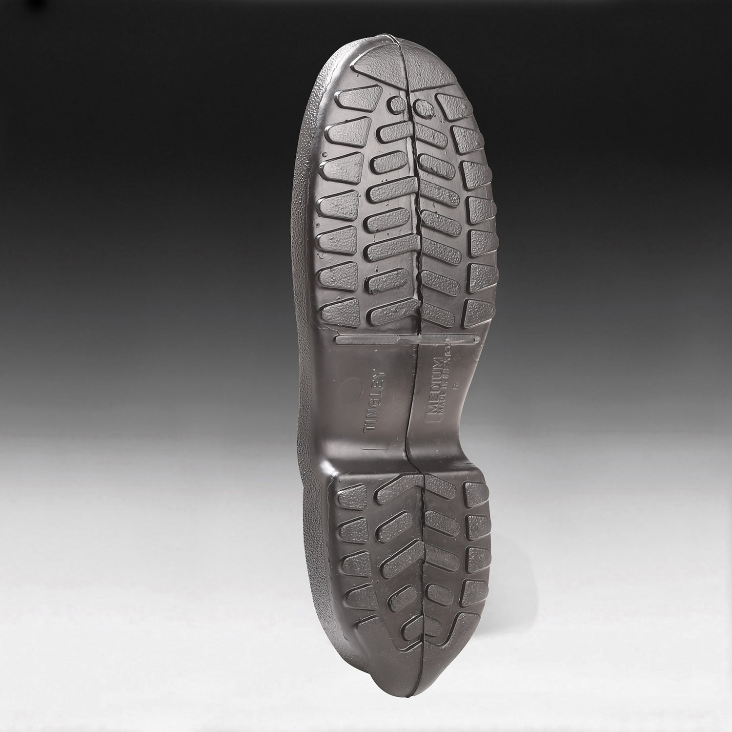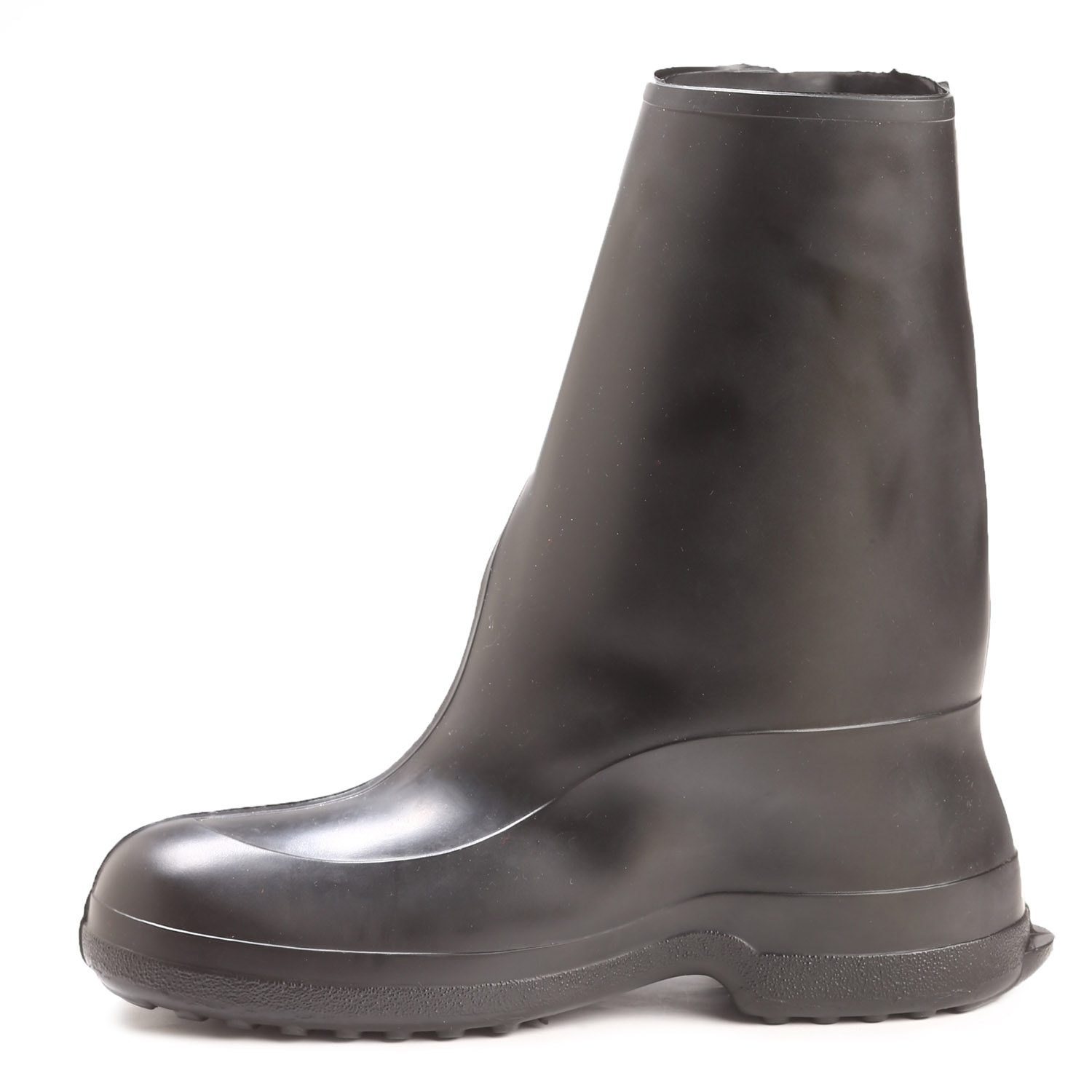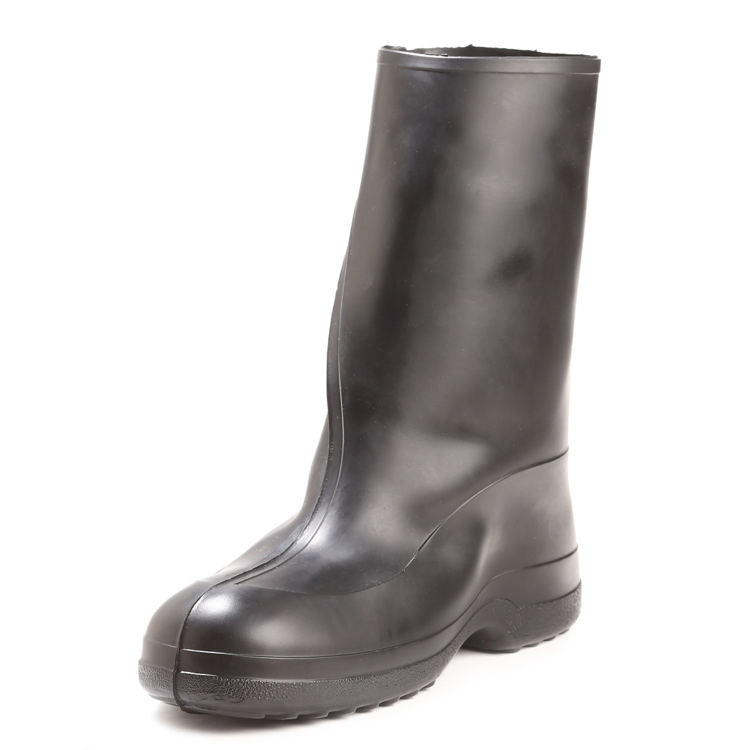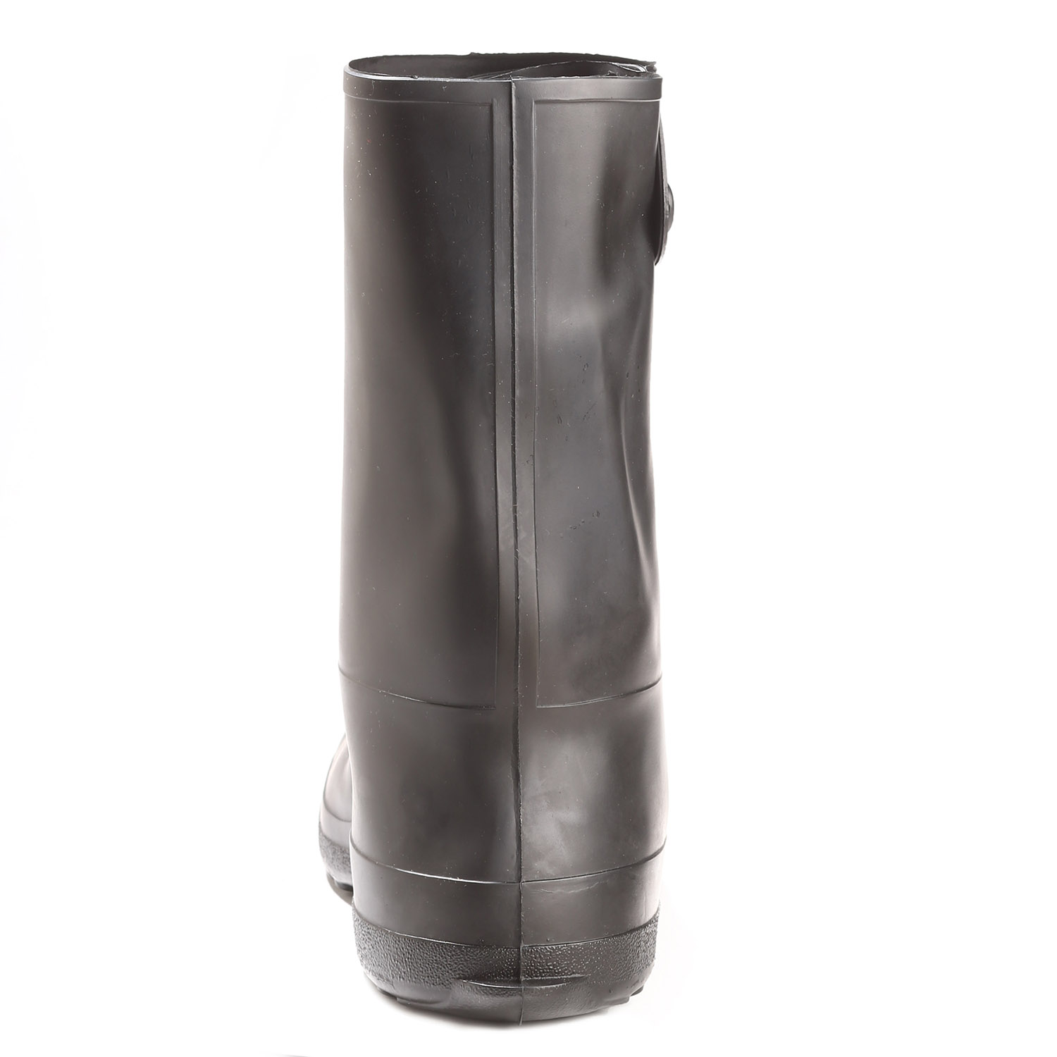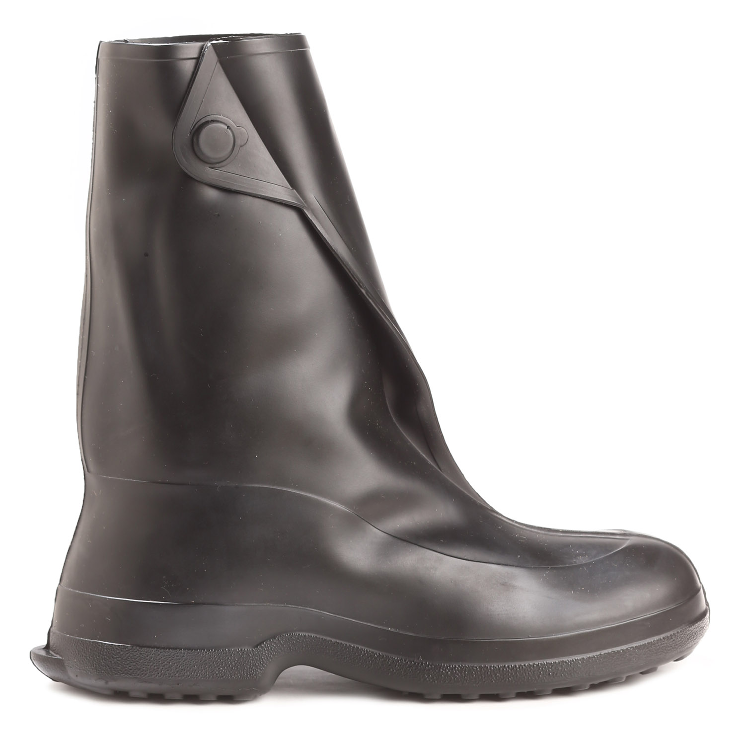 10" black button-closure overshoe designed to fit most all work shoe soles. Offers heavy duty kick-off cleat. 100% waterproof.